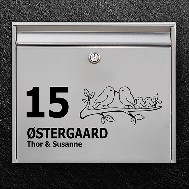 Brevlådaskylt:  Brevlådeklistermärke med fåglar på gren